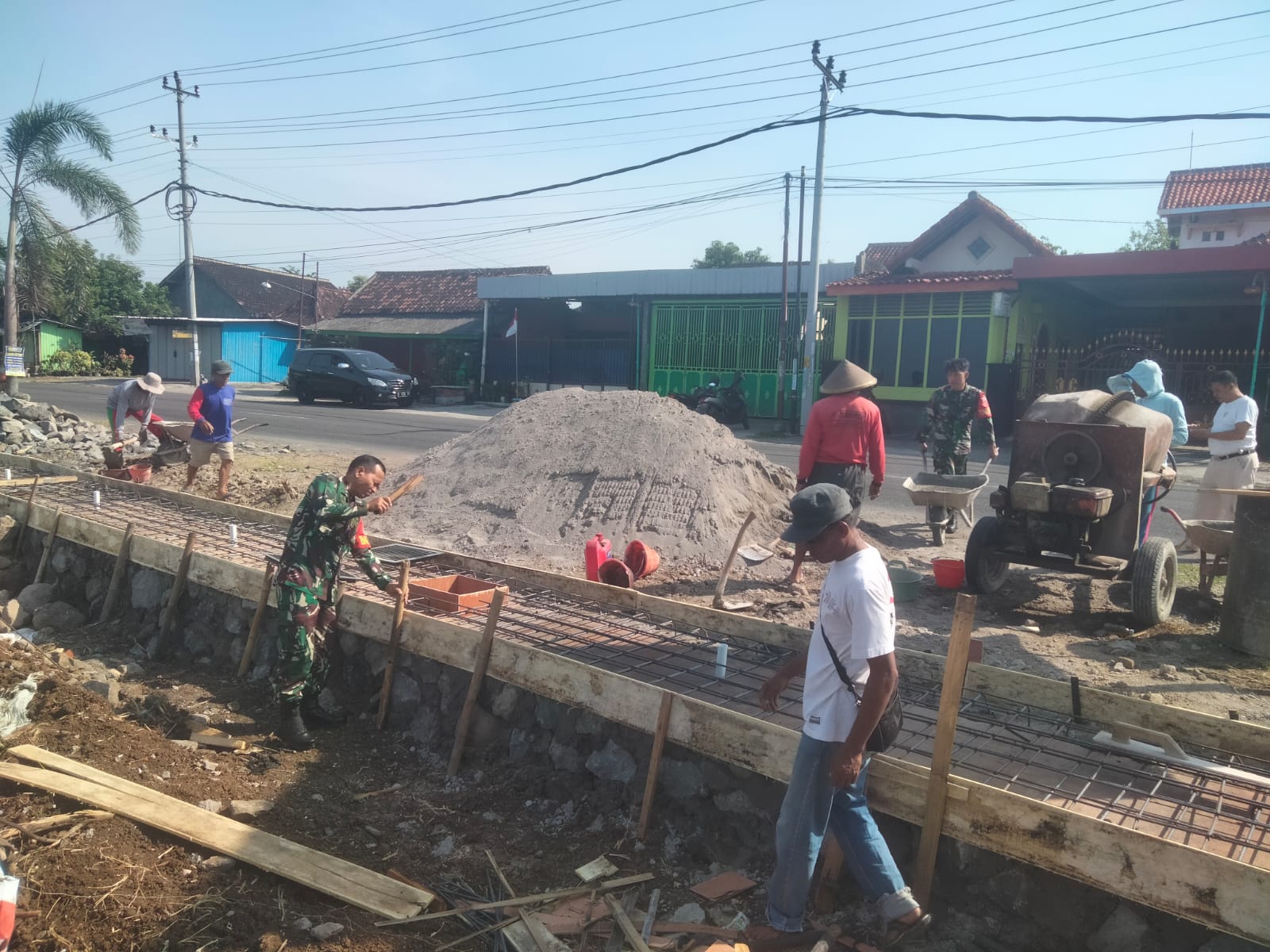 Sragen,radarsidoarjo.site – Pelda R. Jumarno berserta dua Anggota Koramil 18/Kalijambe Kodim 0725/Sragen bersama warga membuat talud penahan jalan di Dusun Plosorejo RT.12 Desa Kalimacan Kecamatan Kalijambe, Senin (08/12/2025).