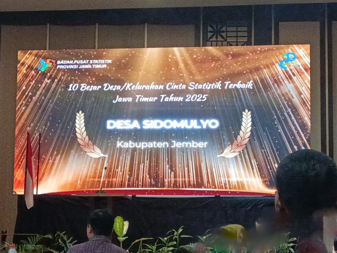 Penghargaan tersebut diberikan oleh Badan Pusat Statistik (BPS) Provinsi Jawa Timur sebagai bentuk apresiasi atas keberhasilan Desa Sidomulyo dalam mengelola dan memanfaatkan data statistik secara optimal.