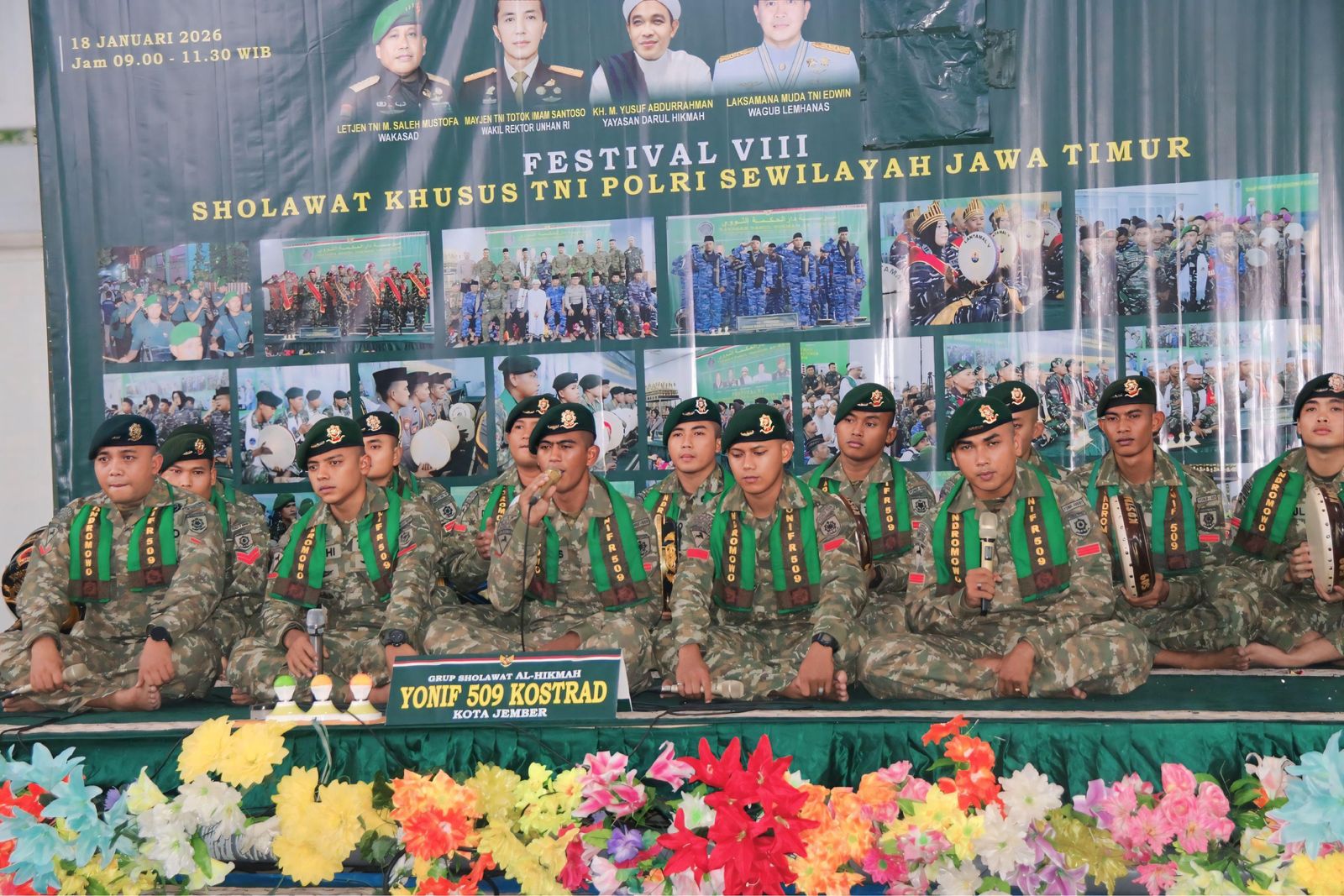 Malang,radarsidoarjo.site – Prestasi memuaskan kembali ditorehkan oleh Grup Sholawat Yonif 509. Dalam ajang Festival Sholawat ke-8 yang digelar oleh Yayasan Darul Hikmah An-Nawawi pada Minggu, 18 Januari 2026, Grup Sholawat Yonif 509 berhasil meraih Juara II dalam kompetisi tingkat TNI–POLRI se-Jawa Timur.