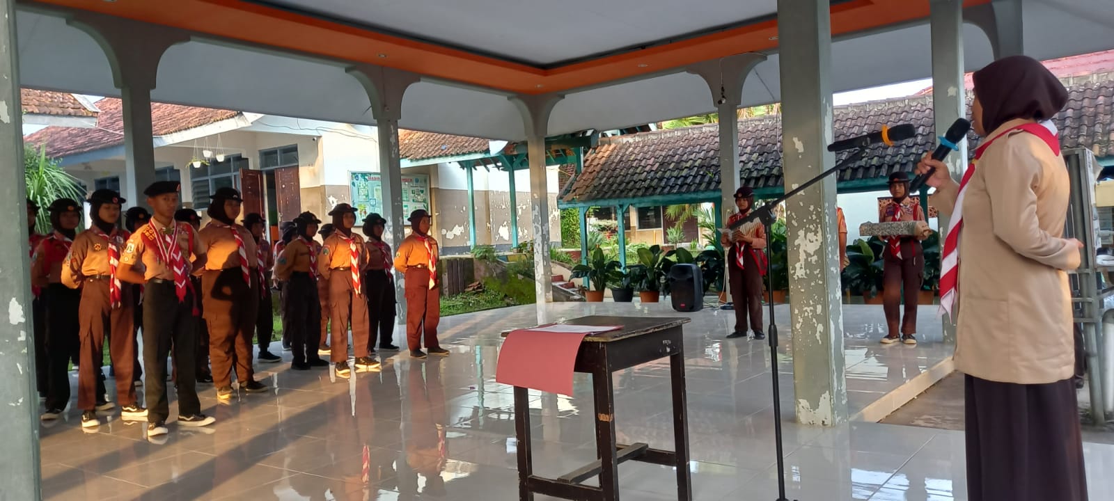 Pengukuhan dilakukan melalui prosesi pembacaan ikrar Dewan Penggalang, penyematan tanda jabatan, serta pemberian amanat oleh Kamabigus. Dalam sambutannya, Ibu Elly Yanuarsih, S.Pd menyampaikan harapan agar Dewan Penggalang dapat menjalankan tugas dengan penuh tanggung jawab serta menjunjung tinggi nilai-nilai Dasa Dharma Pramuka.